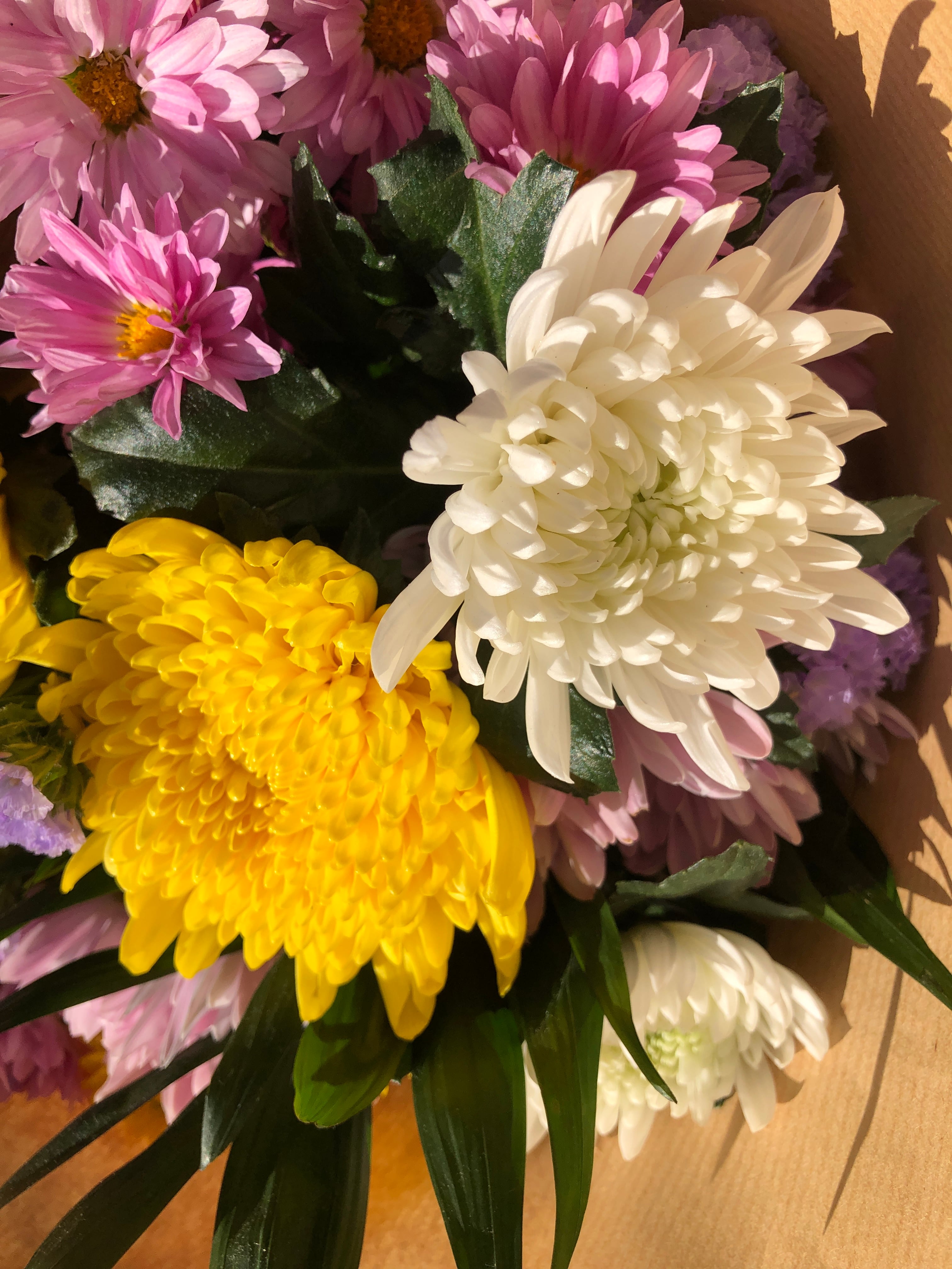 1束はグリーンを含め5種類の花になります。